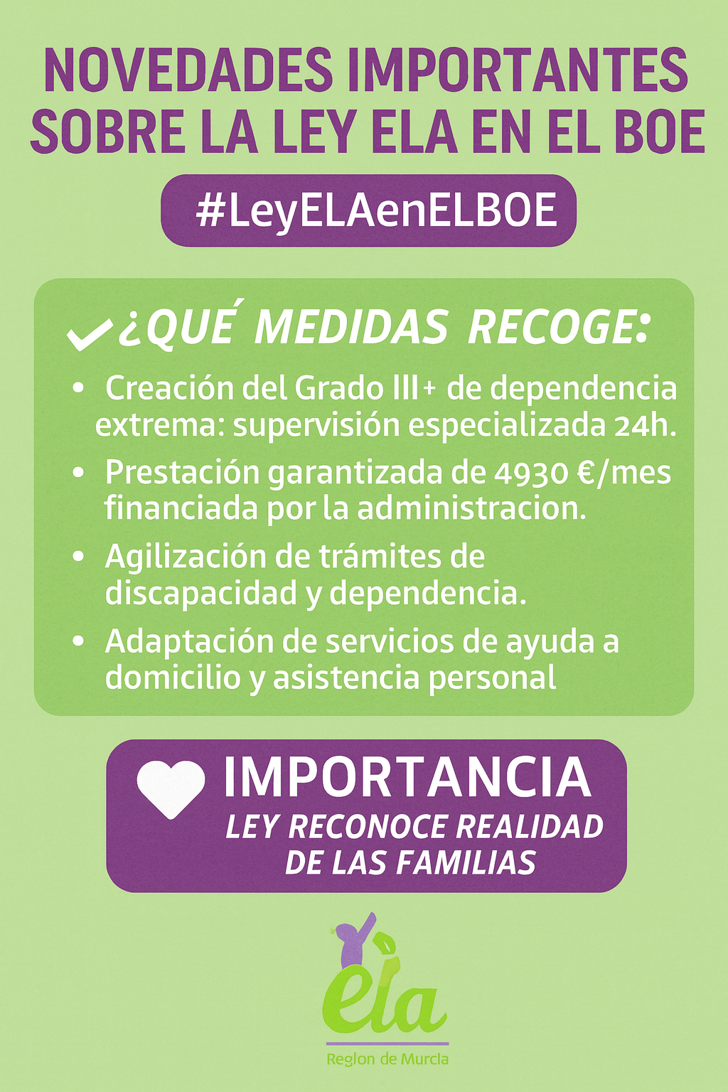 Desde ELA Región de Murcia celebramos este avance, pero también recordamos que aún es necesario seguir trabajando para garantizar una aplicación efectiva y homogénea en toda España.